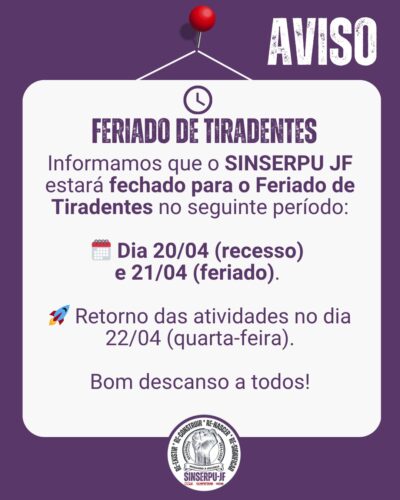 Informamos aos nossos filiados e à categoria que o SINSERPU-JF entrará em recesso nos dias 20 [...]