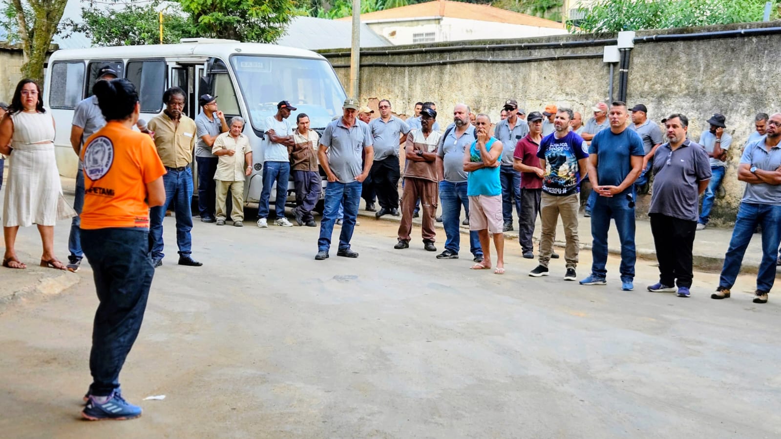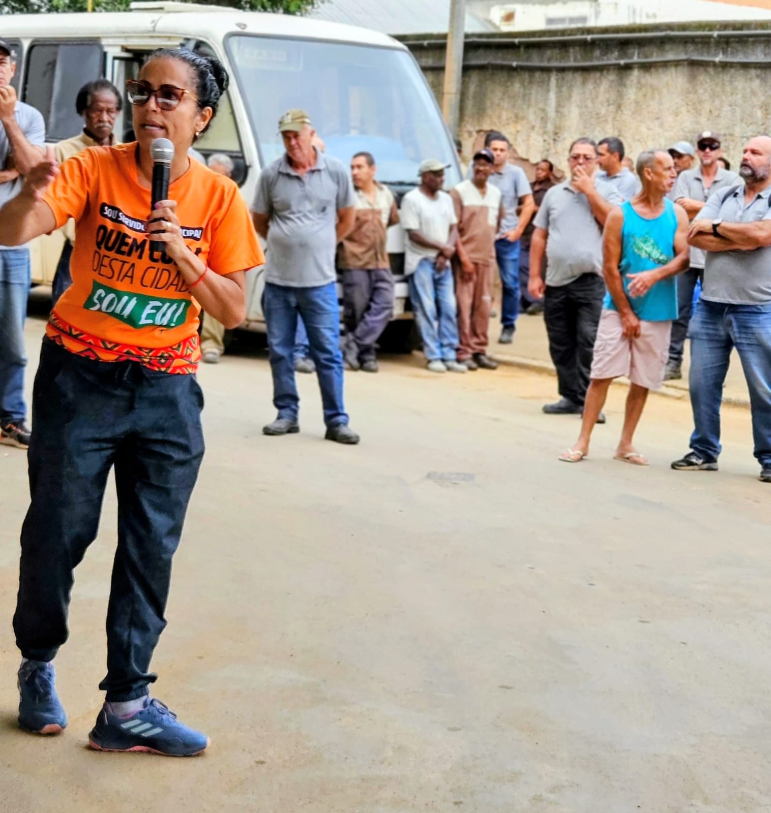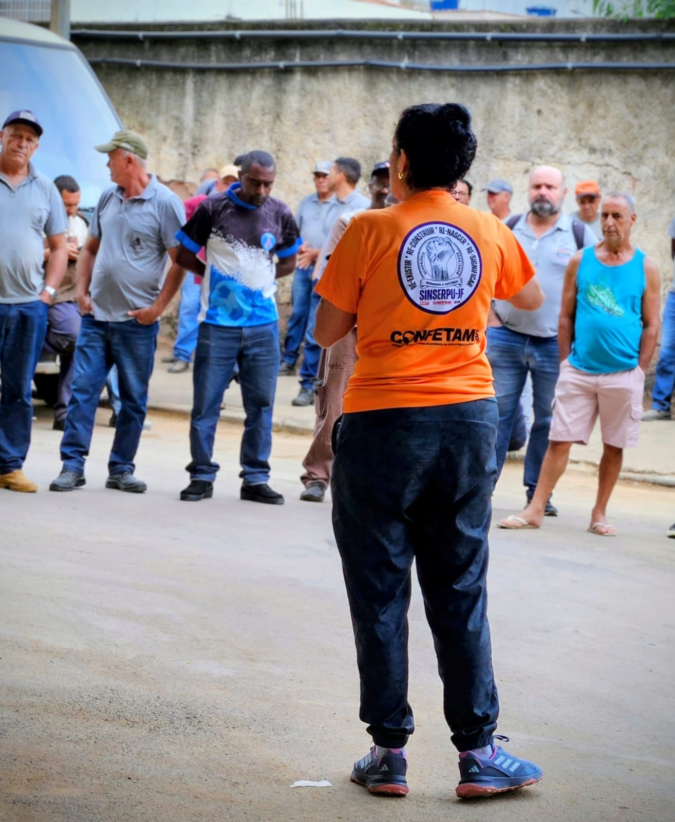 Na manhã desta terça-feira, 31, a presidenta do SINSERPU-JF, Deise Medeiros, esteve no pátio da Secretaria de Obras (SO) acompanhada dos diretores Adenilson Reginaldo “Zé Neguinho” (Social, Raça e Gênero), Alexandre Crepaldi “Chaves” (Financeiro), Anderson Gonçalves “Andinho” (Saúde), Irlan Pereira (Comunicação Social e Cultura), Marco Ribeiro (Financeiro), Tânia Machado (Formação Sindical) e Wanor Vieira (Conselho Fiscal). Em um momento de diálogo direto com os servidores, Deise iniciou a conversa agradecendo o trabalho incansável deles durante o período de calamidade na cidade, destacando que, enquanto o poder público muitas vezes invisibiliza esses esforços, o sindicato tem como missão mostrar a importância de cada trabalhador.
