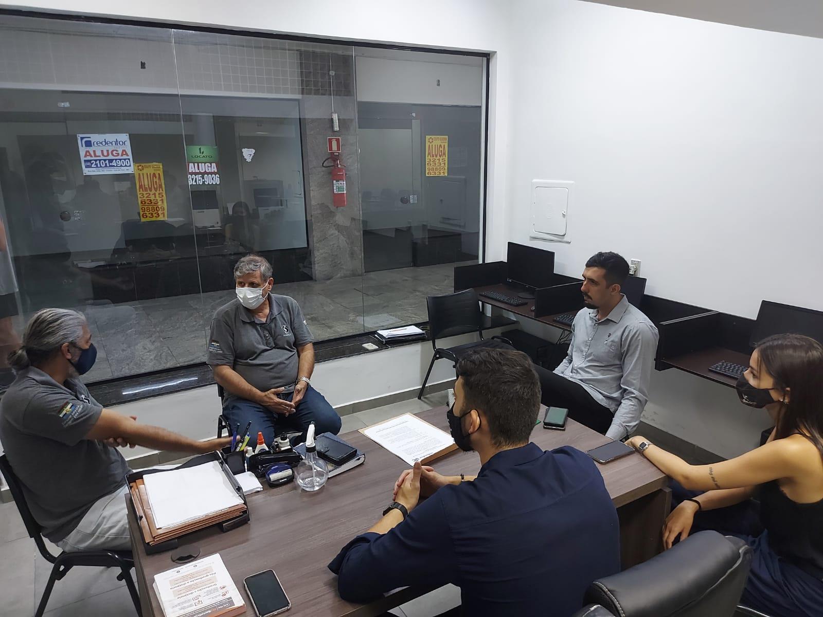 Nas fotos 1 e 2, assinatura do contrato, após reunião, na manhã desta quinta-feira (31 de março); nas fotos 3 e 4, visita de Amanda Fernandes e Marcus Vinicius ao Sindicato, onde foram recebidos pelos diretores do SINSERPU-JF Júlio Mendonça, Rozivaldo Gervásio e Lucileia Pereira – futura aluna do Polo SantaCruz.