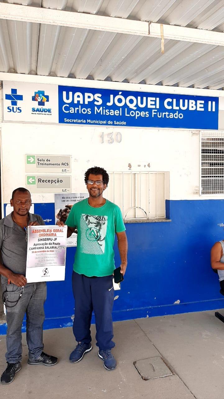 Ainda com o valioso apoio do associado Rafael “DJ Panterão”, integrantes da Diretoria do SINSERPU-JF realizaram, na tarde desta sexta-feira (25 de novembro), mais uma rodada de divulgação da Assembleia do dia 30, visitando as UAPS dos bairros Igrejinha, Nova Era 2, Jóquei Clube 1 e 2, Jardim Natal e Milho Branco e as UBS dos bairros Santa Cruz e São Judas Tadeu.