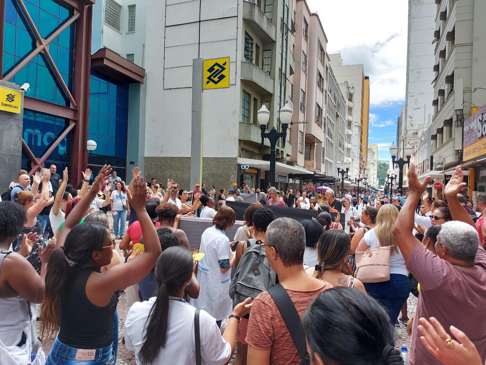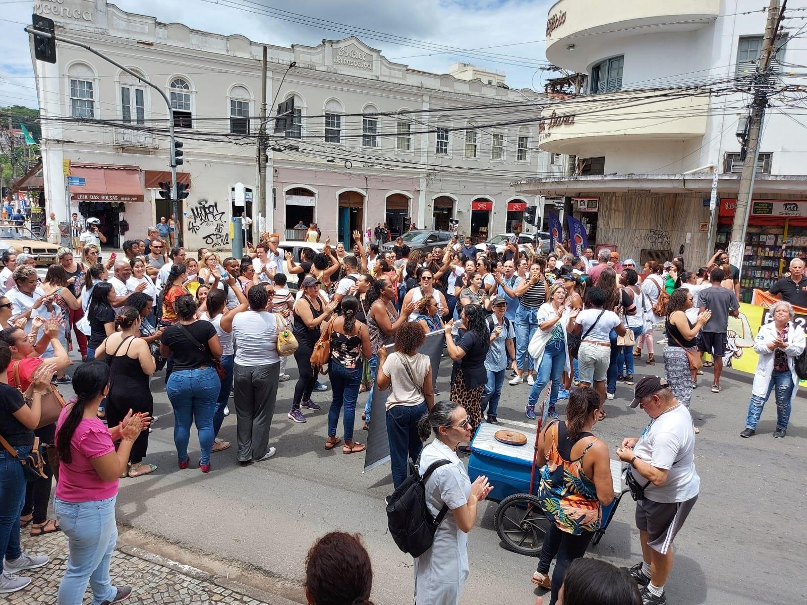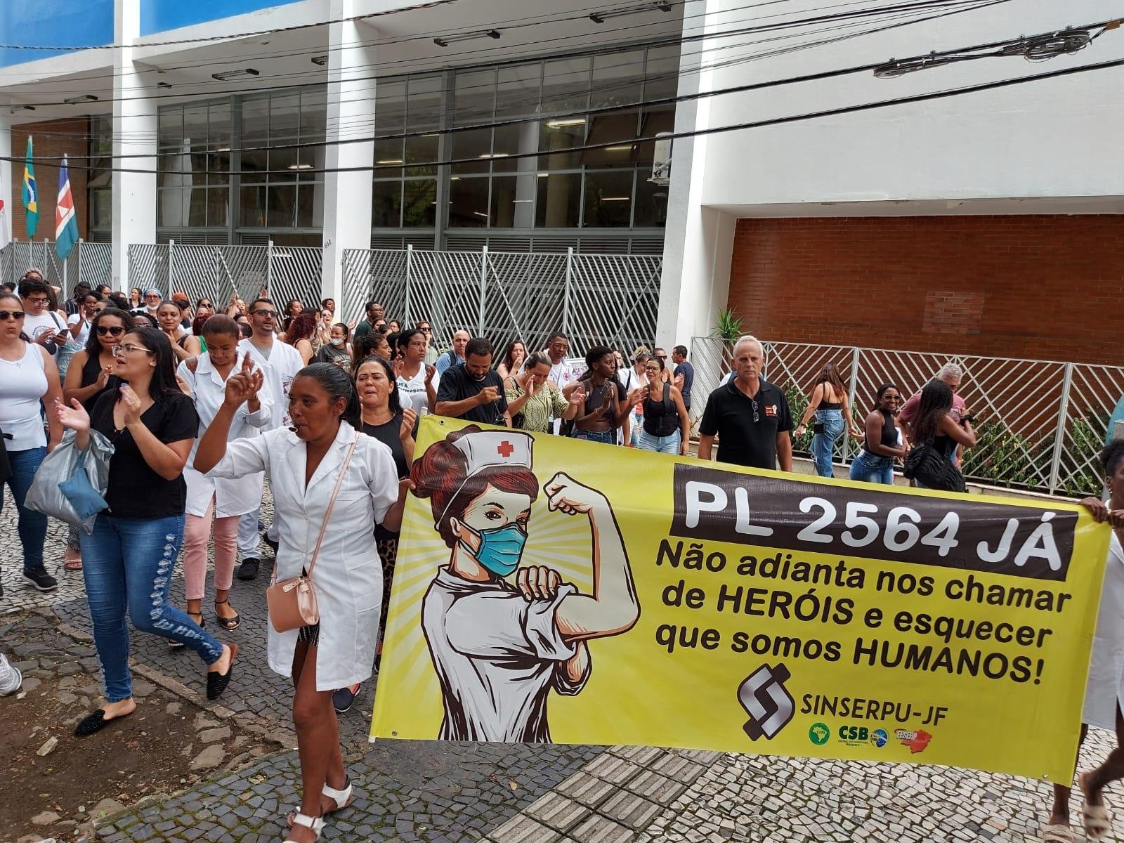 O principal “alvo” dos manifestantes era o ministro do STF (Supremo Tribunal Federal) Luís Roberto Barroso, que suspendeu a aplicabilidade da Lei do Piso – um protesto simbólico contra o Poder Judiciário aconteceu em frente ao Fórum Benjamin Colucci. Os trabalhadores resolveram também “investir” no poder público municipal e aprovaram um deslocamento do Parque Halfeld à Prefeitura, na esperança de serem atendidos pela prefeita Margarida Salomão (PT). Foram recebidos, no pátio da Prefeitura, pelos secretários municipais de Saúde, Ivan Chebli, e Recursos Humanos, Rogério Freitas – antes disso, um pequeno momento de tensão quando os servidores encontraram fechado o portão que dá acesso à Prefeitura, via linha férrea. Eles, em protesto, “fecharam” por alguns minutos a Avenida Francisco Bernardino até que o portão fosse aberto (Freitas, a propósito, pediu desculpas em nome da Administração Municipal pelo portão fechado).
