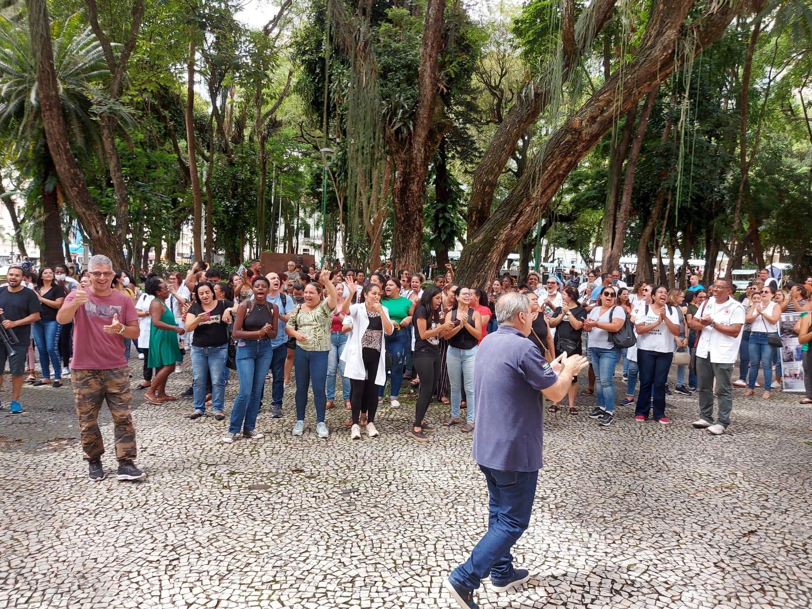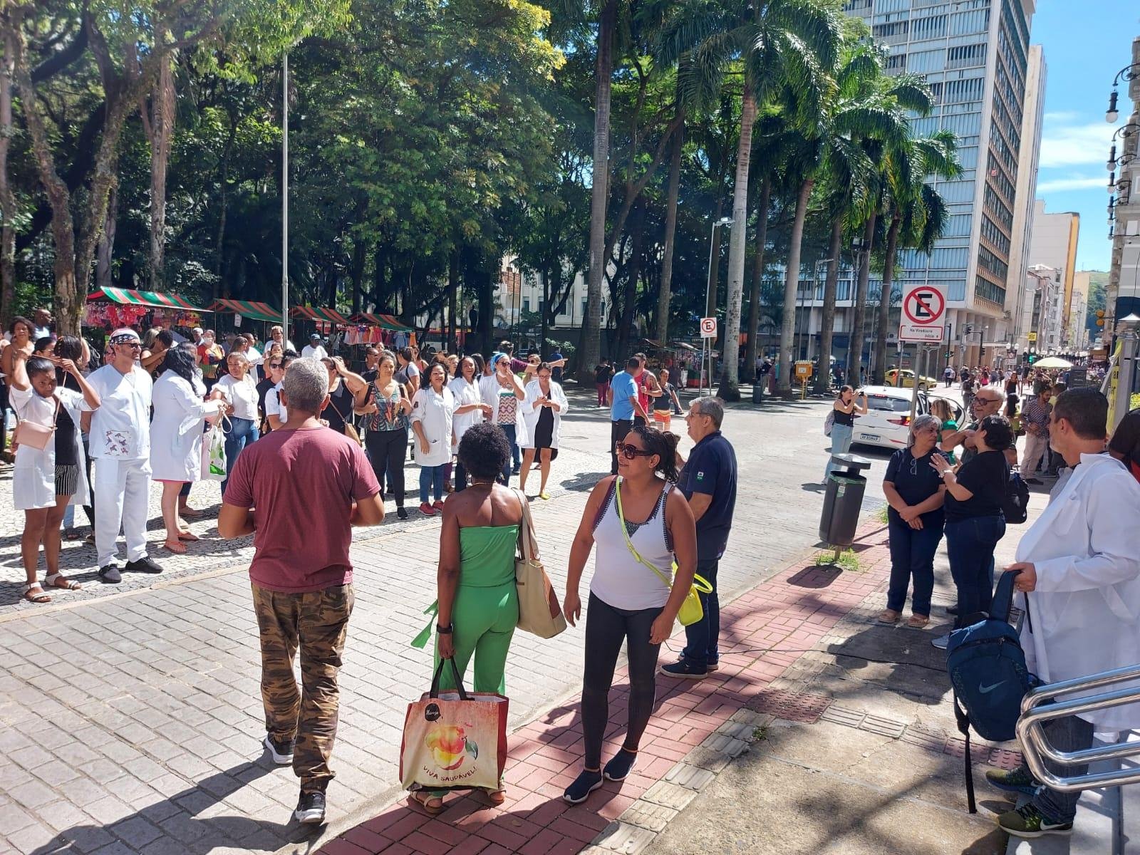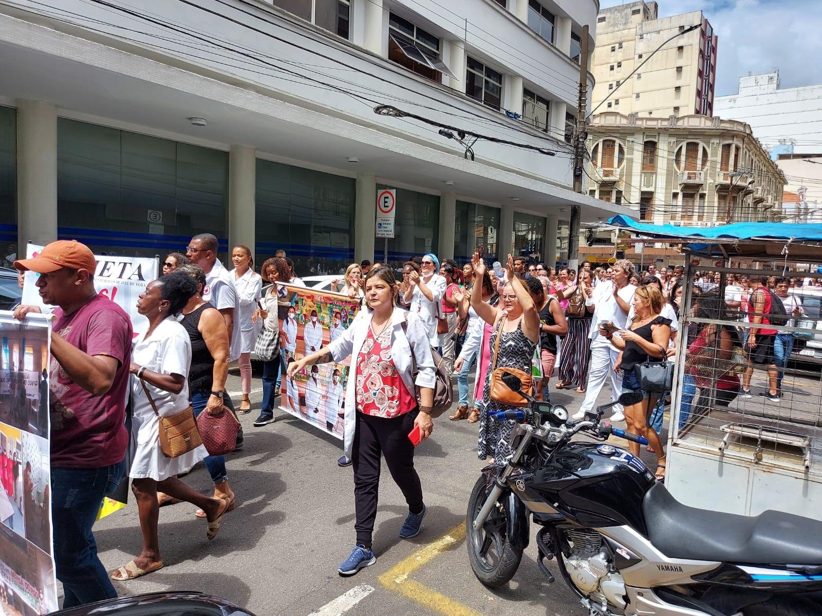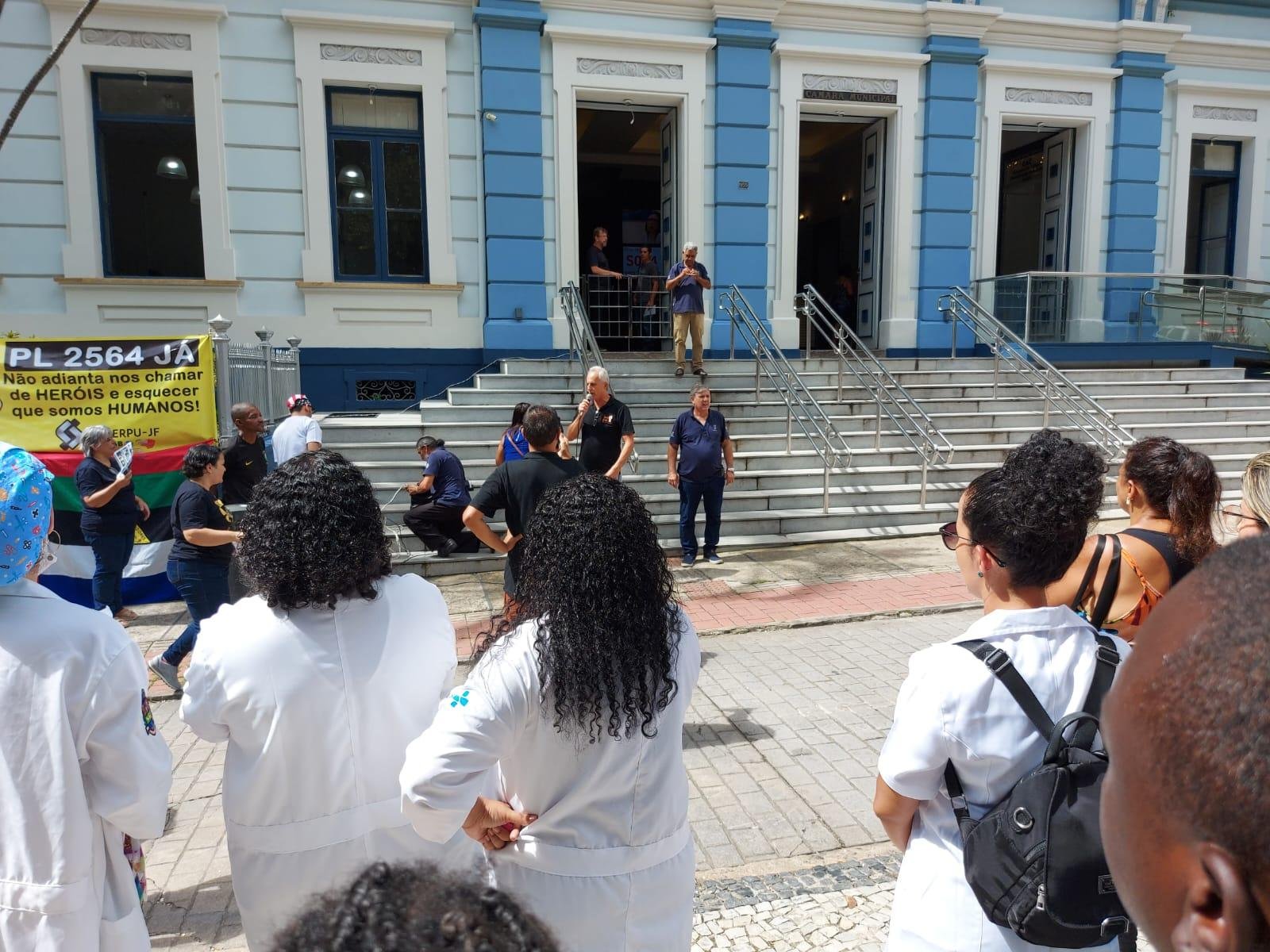 O SINSERPU-JF protagonizou mais um ato de apoio ao piso nacional da enfermagem (uma rotina que vem desde setembro de 2020), ao realizar uma Assembleia com os trabalhadores, na manhã desta terça-feira (14 de fevereiro). Na reunião, no Parque Halfeld (Centro de Juiz de Fora), os profissionais decidiram pela adesão à paralisação das atividades no dia de hoje, e aprovaram o início de uma greve em 10 de março – caso até lá o piso ainda não esteja sendo pago. “Não faz mais nenhum sentido brecar a aplicabilidade do piso, já que é uma Lei aprovada pelo Congresso. Além disso, além da burocracia ou legitimidade de uma lei trata-se da justa e necessária valorização de profissionais que são vitais no dia a dia”, resumiu o presidente do SINSERPU-JF, Francisco “Chiquinho” Carlos da Silva. Também marcaram presença no Ato os diretores do Sindicato Antônio Carlos de Sant’Ana, Cosme Nogueira, Ivan Catarina, Júlio Mendonça, Laureano Ferreira e Rozivaldo Gervásio.