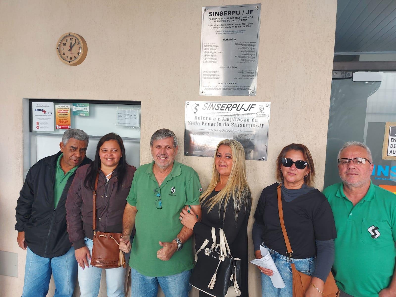 A presidenta do SINSERPU-JF, Deise Medeiros, acompanhada do vice-presidente Weber Wagner e dos diretores Anderson Gonçalves [...]