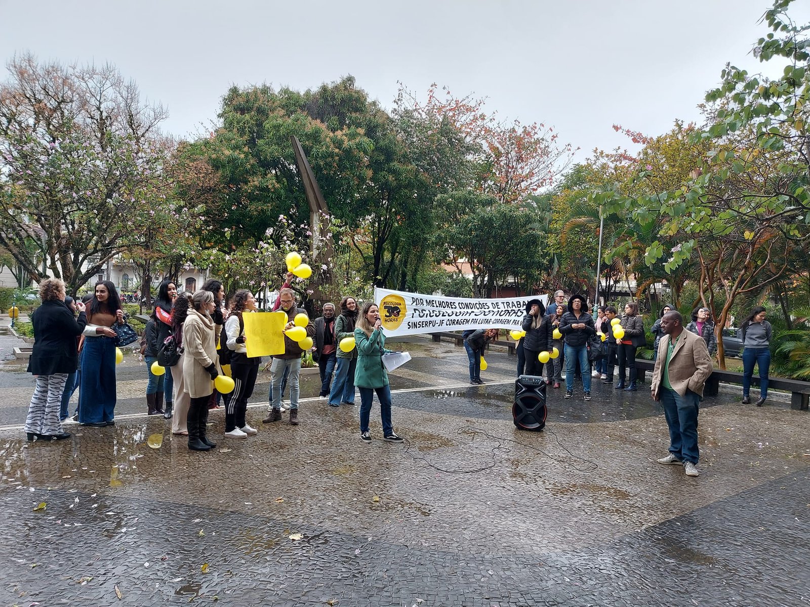O presidente do SINSERPU-JF, Francisco “Chiquinho” Carlos da Silva, reafirmou o apoio do Sindicato à causa e o vice-presidente Cosme Nogueira ressaltou que a luta dos psicólogos, além de importante e justa, faz parte de um movimento amplo “para recuperar direitos retirados pela Reforma Trabalhista, de 2017”. Os diretores do SINSERPU-JF Ivan Catarina, Júlio Mendonça e Rozivaldo Gervásio também participaram do evento.
