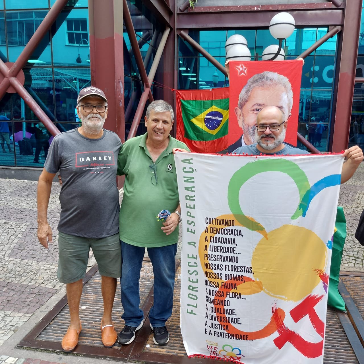 Os diretores do SINSERPU-JF Francisco “Chiquinho” Carlos da Silva (presidente) e Rozivaldo Gervásio participaram, na tarde desta segunda-feira (8 de janeiro), de um Ato em favor da Democracia, para relembrar e repudiar os acontecimentos de 8 de janeiro de 2023, quando pessoas insatisfeitas com o resultado legítimo das eleições invadiram e destruíram as sedes dos três poderes em Brasília, em uma tentativa de golpe de estado – financiados por empresários e incentivados por políticos de extrema direita.