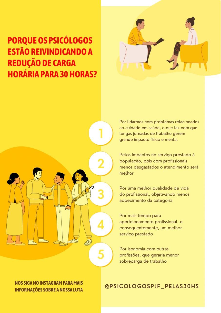 Durante o ato, três representantes dos trabalhadores (Lais Lage de Carvalho, Sara Ribeiro e Taisa Serpa), os diretores do SINSERPU-JF Francisco “Chiquinho” Carlos da Silva (presidente) e Antônio Carlos de Sant’Ana e a vereadora Cida Oliveira (PT) foram recebidos pelo secretário municipal de Recursos Humanos, Rogério Freitas, e o procurador-geral do Munícipio, Marcus Motta Monteiro. As psicólogas ressaltaram que a demanda pela jornada de 30 horas é antiga, que não querem que a reivindicação seja “atrelada” a um futuro plano de cargos e carreiras e que a medida carece de urgência, para evitar, entre outras coisas, o adoecimento dos profissionais. Os representantes da Prefeitura, no entanto, citaram uma “possível insegurança jurídica”, em ano eleitoral, para descartar oficialmente a possibilidade de atender a reivindicação.