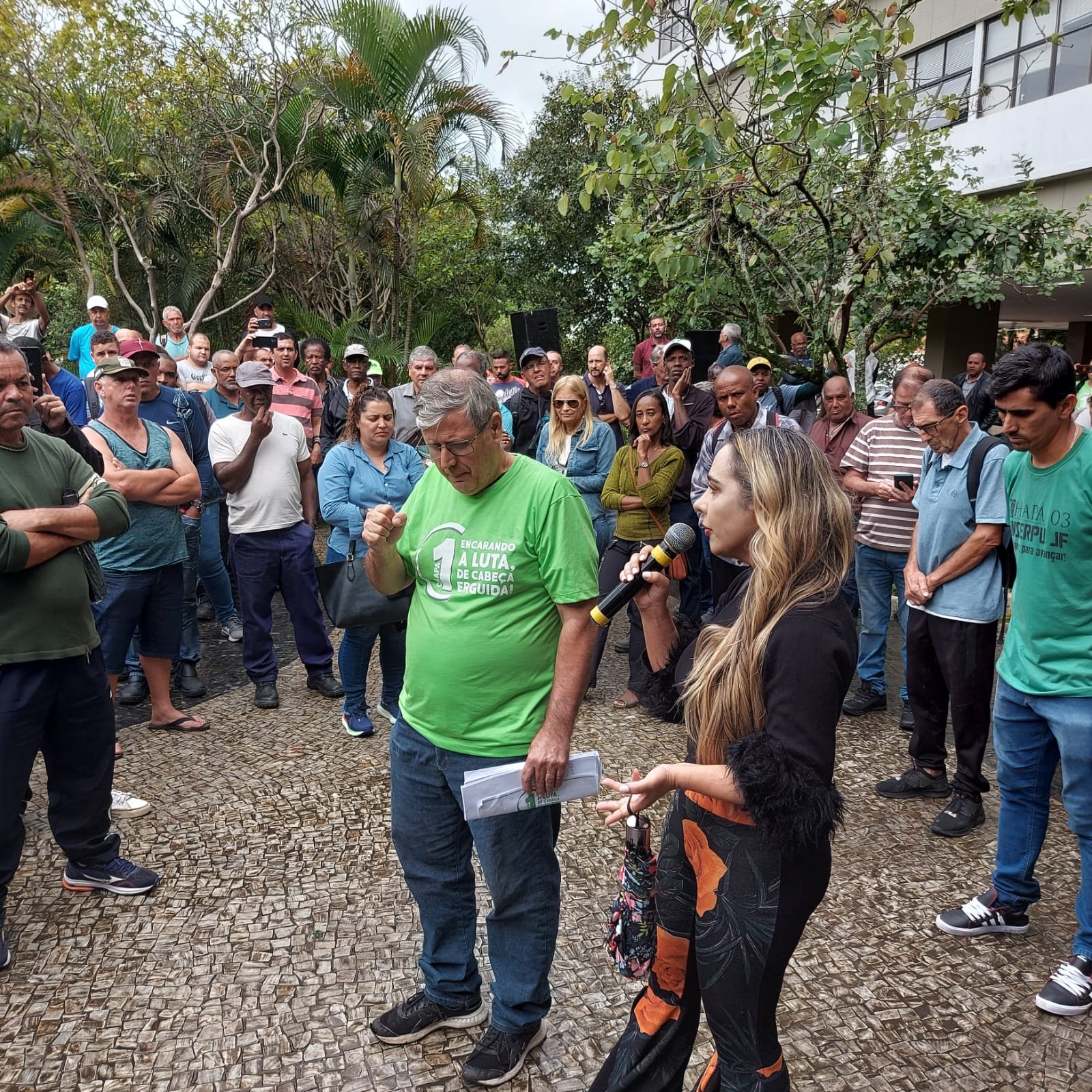 A presidenta do SINSERPU-JF, Deise Medeiros, acompanhada do vice-presidente Weber Wagner e dos diretores Anderson Gonçalves [...]