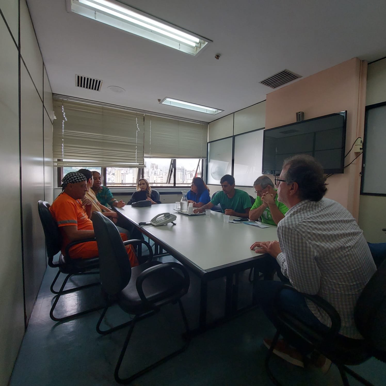 O que Francisco Carlos disse na Assembleia (sobre o foco principal dos trabalhadores no ticket alimentação de R$ 600 para todos) ele repetiu ao secretário municipal de Recursos Humanos, Rogério Freitas, que recebeu o presidente do SINSERPU-JF e mais seis pessoas: a assessora jurídica do Sindicato, Elisângela Nascimento, representantes das três chapas que participam do processo eleitoral do SINSERPU-JF (Maria Heloisa de Oliveira, Raphael de Oliveira Lopes e Flávio Roberto da Cunha) o servidor do DEMLURB Último Caetano e a diretora do Sindicato dos Engenheiros de Juiz de Fora, Maria Angélica Arantes. Na ocasião, Rogério Freitas disse aos sindicalistas que a proposta desta segunda-feira é a “final da PJF”, mas que qualquer fato diferente disso será comunicado ao SINSERPU-JF.