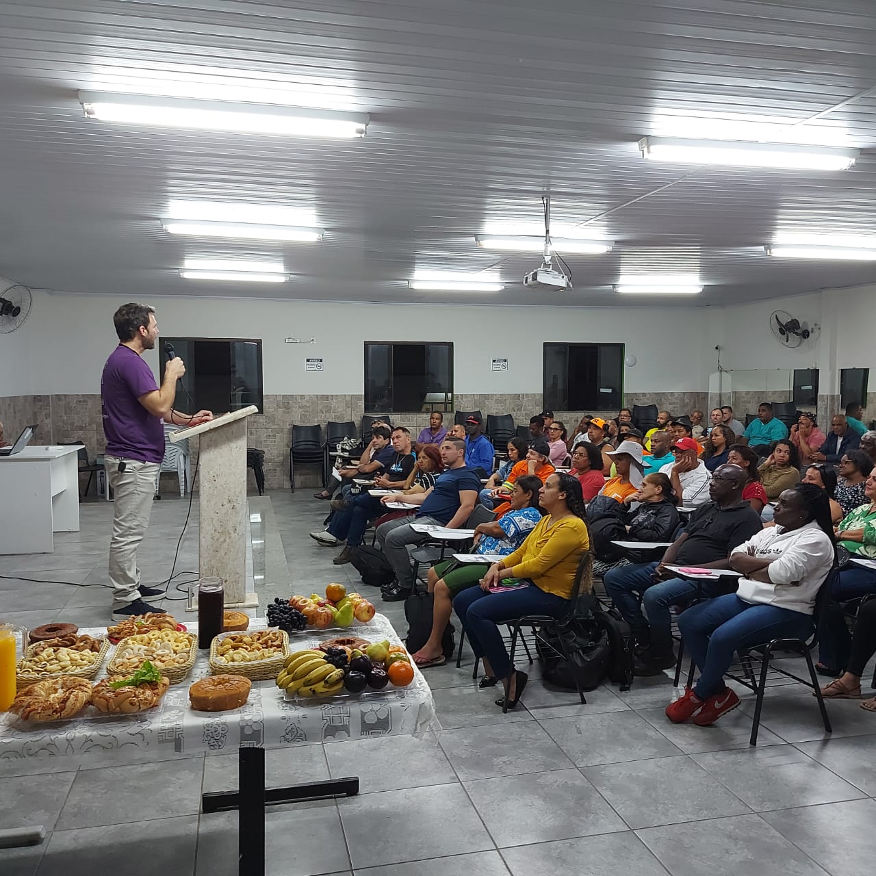 A primeira noite (segunda-feira, 5 de agosto) do grupo de estudos preparatório para o concurso do DEMLURB foi de recepção aos servidores inscritos, apresentação dos envolvidos, distribuição de material didático (apostilas) e escolar (caneta, lápis e borracha) e, principalmente, de destacar o enorme senso de responsabilidade, o ineditismo e a grandeza do projeto. Não por acaso, a presidenta do SINSERPU-JF Deise Medeiros, em seu discurso de boas-vindas, citou Paulo Freire, pois foi o ideário do revolucionário educador brasileiro (de inclusão pela educação, de oportunidade a todos e de aprendizado de acordo com a realidade de cada um) que levou o Sindicato a abraçar a ideia surgida na Secretaria Municipal de Obras e levada à diretoria pelo segundo diretor financeiro, Alexandre Crepaldi “Chaves”.