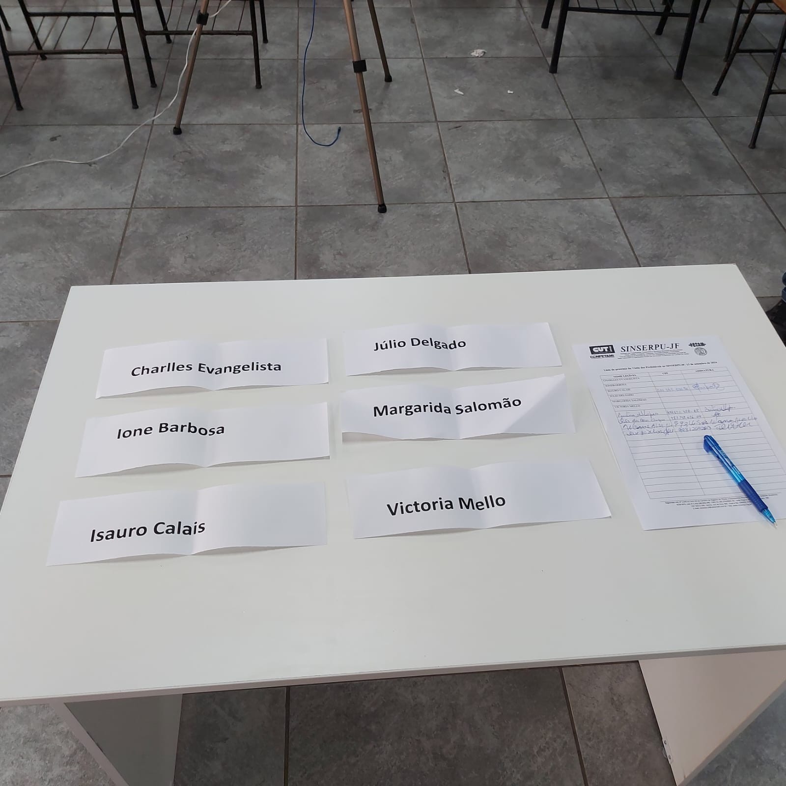 Do sorteio participaram a coordenadora da campanha de Isauro Calais, Patrícia Souza Daibert (os outros cinco representantes, dos demais candidatos/candidatas, não compareceram, apesar de convidados, alegando participação em um debate), vários diretores do SINSERPU-JF e, como testemunhas, as presidentes da AMETA (Associação dos Servidores Públicos de Juiz de Fora), Cristina Lopes, e do SINDACE (Sindicato dos Agentes Comunitários de Saúde e de Agentes de Combate às Endemias), Rita das Dores Duque.