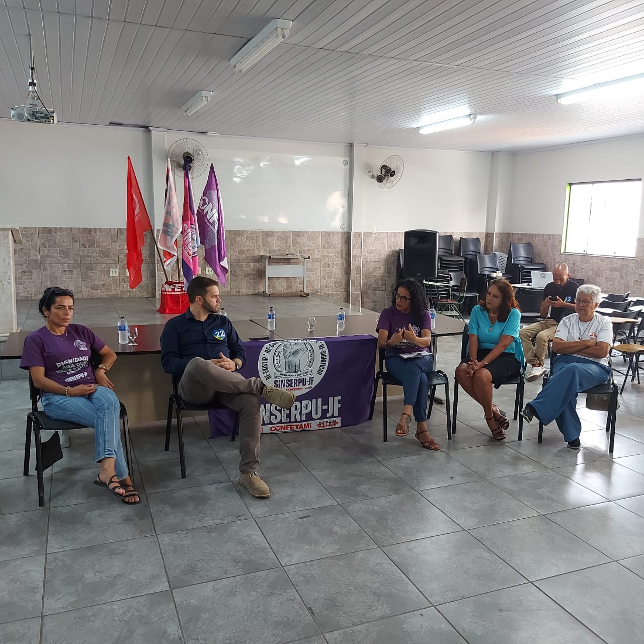 “Um momento extremamente importante para o SINSERPU-JF, que elaborou a carta e está pedindo a assinatura dos candidatos sob orientação dos nossos entes sindicais a que somos filiados (CUT, CONFETAM e FETAM). Mais que um compromisso é uma possibilidade de resgatar a dignidade dos servidores”, afirmou a presidenta do SINSERPU-JF, Deise Medeiros, que citou a força do funcionalismo municipal, como a “a maior empregadora do município”.