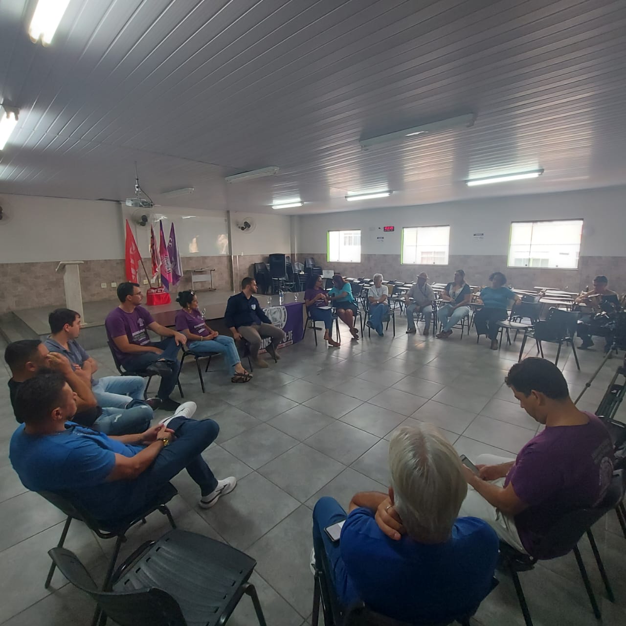 Do evento, que se tornou uma reunião informal, de opiniões e questionamentos ao candidato participaram vários diretores do SINSERPU-JF, a diretora Administrativa da Regional Zona da Mata do SENGE-MG), Maria Angélica Aguiar, e a presidente do SINDACE, Rita das Dores Duque.