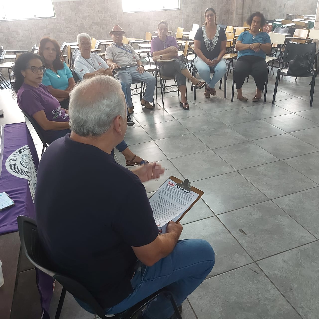 Do evento, que se tornou uma reunião informal, de opiniões e questionamentos ao candidato participaram vários diretores do SINSERPU-JF, a diretora Administrativa da Regional Zona da Mata do SENGE-MG, Maria Angélica Aguiar, e a presidente do SINDACE, Rita das Dores Duque.