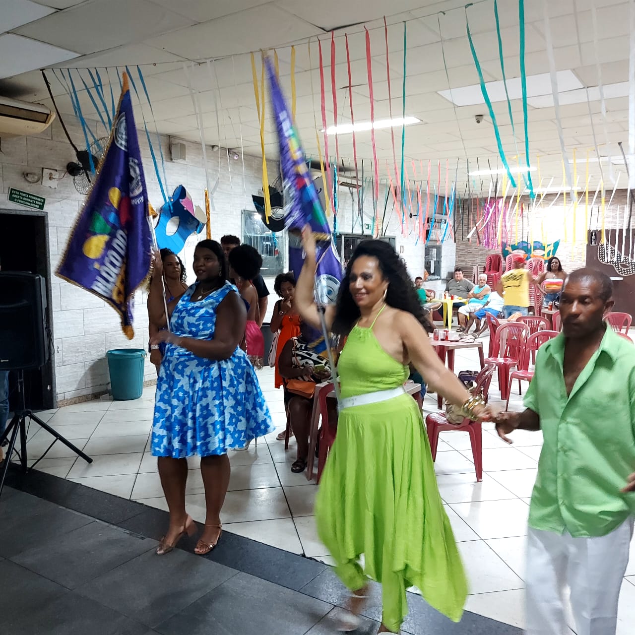“Chamei a Bete e o Sambista (Aloísio) para entregar a bandeira porque eles são servidores. Eles vão ‘puxar’ o Bloco, o casal oficial de mestre-sala e porta-bandeira. A Lucilea (vice-presidente do SINSERPU-JF) entregou oficialmente a outra bandeira a Bia Costa, funcionária da AMAC. Ela vai ‘puxar’ os foliões do Bloco, no dia 21. Então teremos duas porta-bandeiras e dois mestres-salas”, explicou Deise Medeiros.