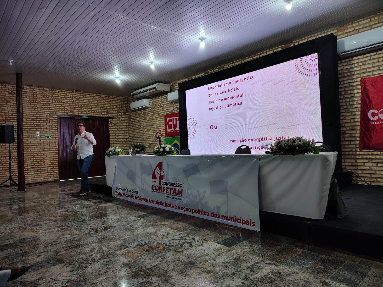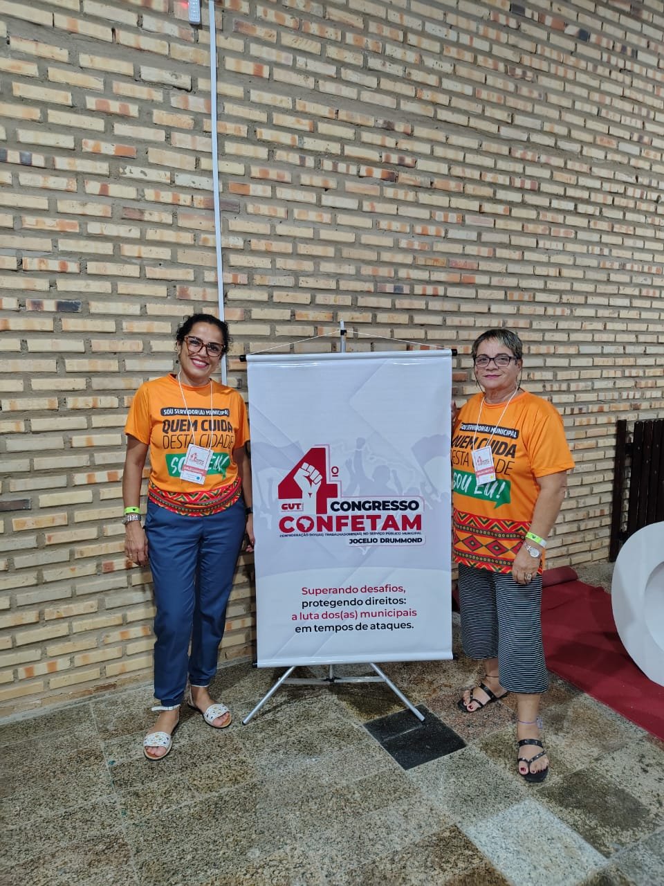 A presidenta do SINSERPU-JF, Deise Medeiros, e a conselheira fiscal do Sindicato, Vera Lúcia Daniel, participaram, na tarde desta quarta-feira (9 de abril), do Seminário “Trabalho, meio ambiente, transição justa e a ação política dos municipais” – parte do 4º Congresso da CONFETAM/CUT, que será aberto oficialmente às 20h desta quarta-feira. “Um tema extremamente importante na concepção dos municipais, que teve uma enorme contribuição dos palestrantes Renato Roseno (deputado estadual do PSOL) e João Cayres (secretário regional da ISP no Brasil)”, observou Deise Medeiros.