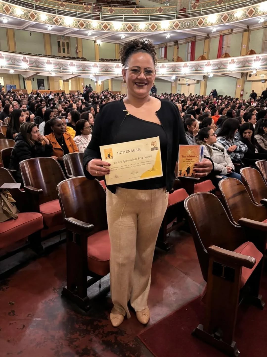 A 2ª vice-presidente do SINSERPU-JF, Lucilea Pereira, foi homenageada pela AMAC (Associação Municipal de Apoio Comunitário) na manhã desta segunda-feira (14/07) no Cine-Theatro Central. O evento, intitulado “Troca de Saberes e Fazeres das Creches AMAC”, reuniu centenas de educadoras e funcionárias da associação para uma manhã dedicada ao compartilhamento de práticas pedagógicas e experiências profissionais.