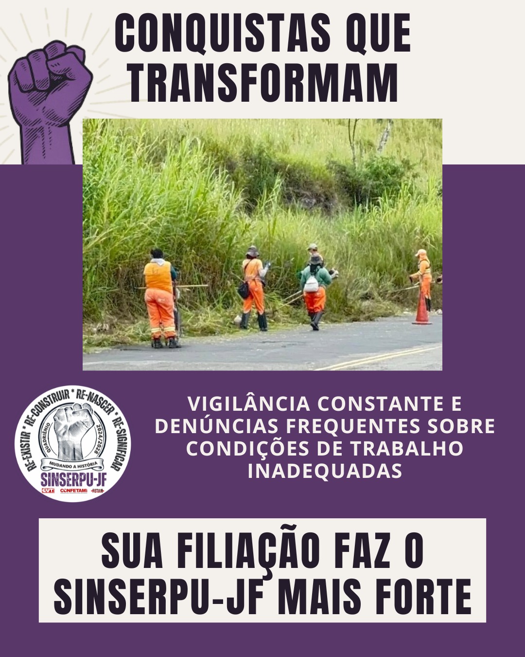 É o que mostramos nesta quinta com a séria “CONQUISTAS QUE TRANSFORMAM”. Chegou a hora de destacarmos nossas ações permanentes por ambientes de trabalho justos e seguros:
