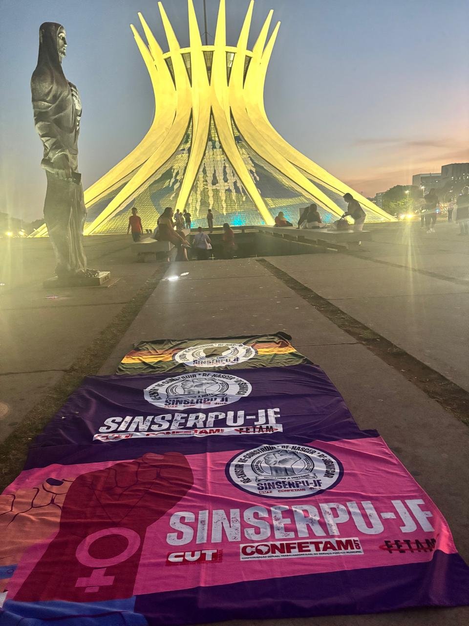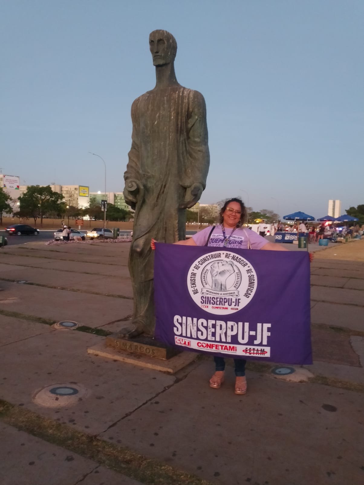 Em Brasília, para a 5ª Conferência Nacional de Políticas Públicas para as Mulheres, as diretoras do SINSERPU-JF Lucilea Pereira (vice-presidente), Denise Medeiros (Administrativa) e Bernadete Reis (Base) participaram, na tarde/noite desta terça-feira (30 de setembro), de uma Caminhada das Mulheres. Elas saíram do Museu da República, em direção ao Congresso Nacional pedindo o fim da escala 6 x 1 e principalmente Democracia, Igualdade e Conquistas para Todas.