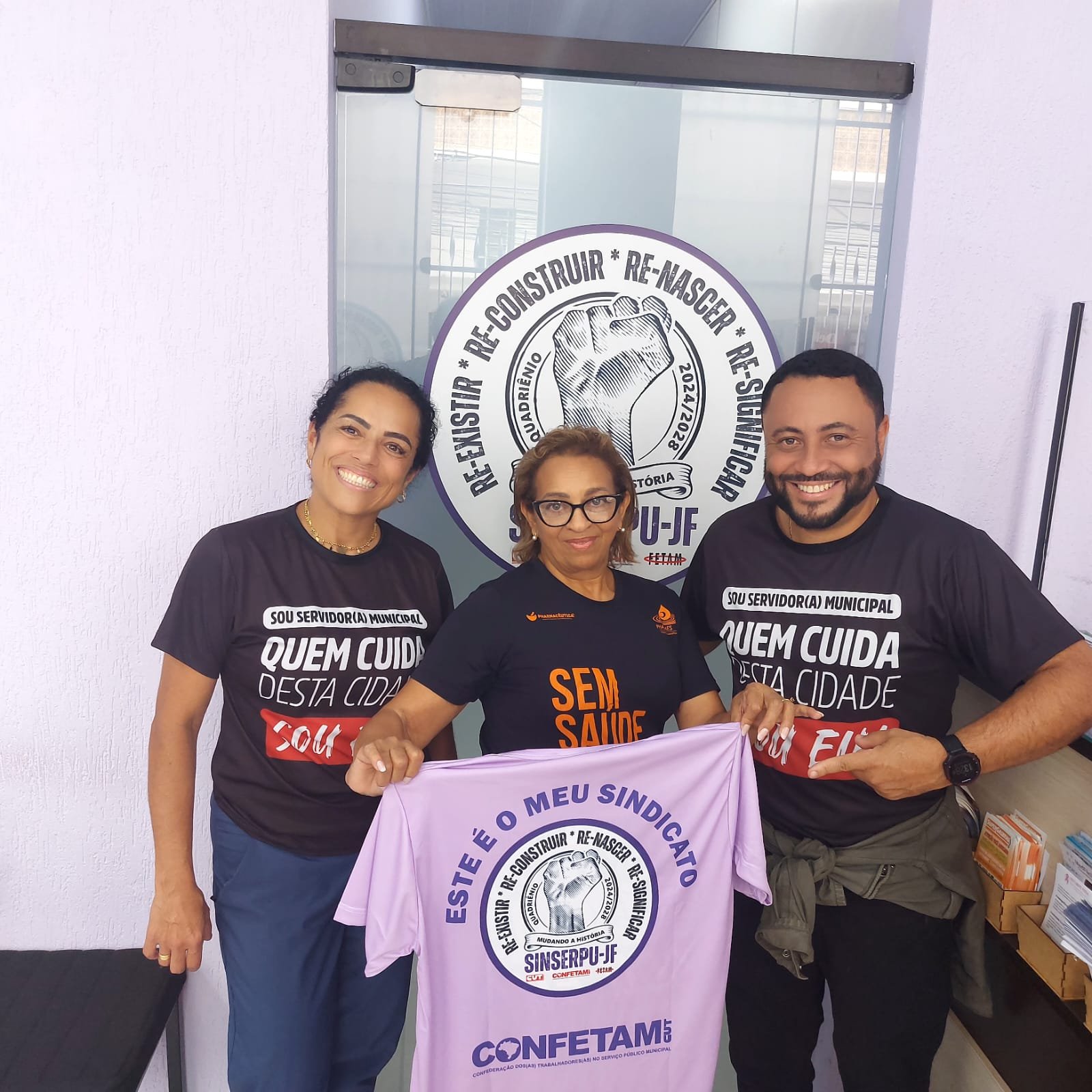 Roseli Costa, auxiliar de enfermagem do HPS, uma das 50 sorteadas com a camisa especial do SINSERPU-JF (presente do Dia do Servidor), foi a primeira a comparecer ao Sindicato, no início da tarde desta terça-feira (28 de outubro), para buscar o prêmio.