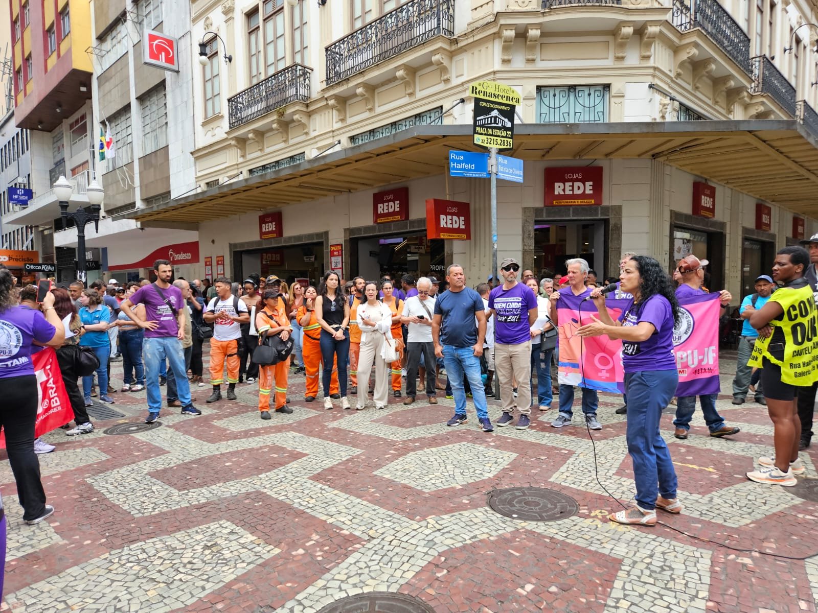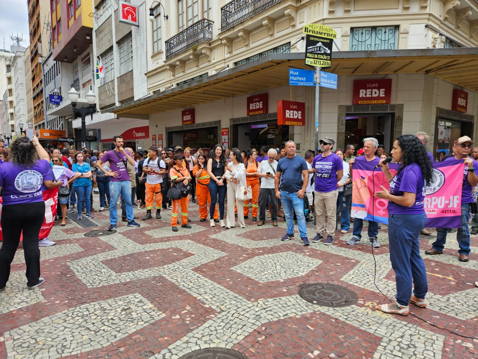 Em um dia de luta e resistência, o SINSERPU-JF escreveu, na manhã desta quarta-feira, 29, mais um capítulo de sua história em defesa do servidor municipal. Uma Assembleia Geral Extraordinária com paralisação atraiu dezenas de trabalhadores e trabalhadoras para a frente das escadarias da Câmara Municipal, no Parque Halfeld, em um protesto único na cidade contra a PEC 38, a chamada Reforma Administrativa.