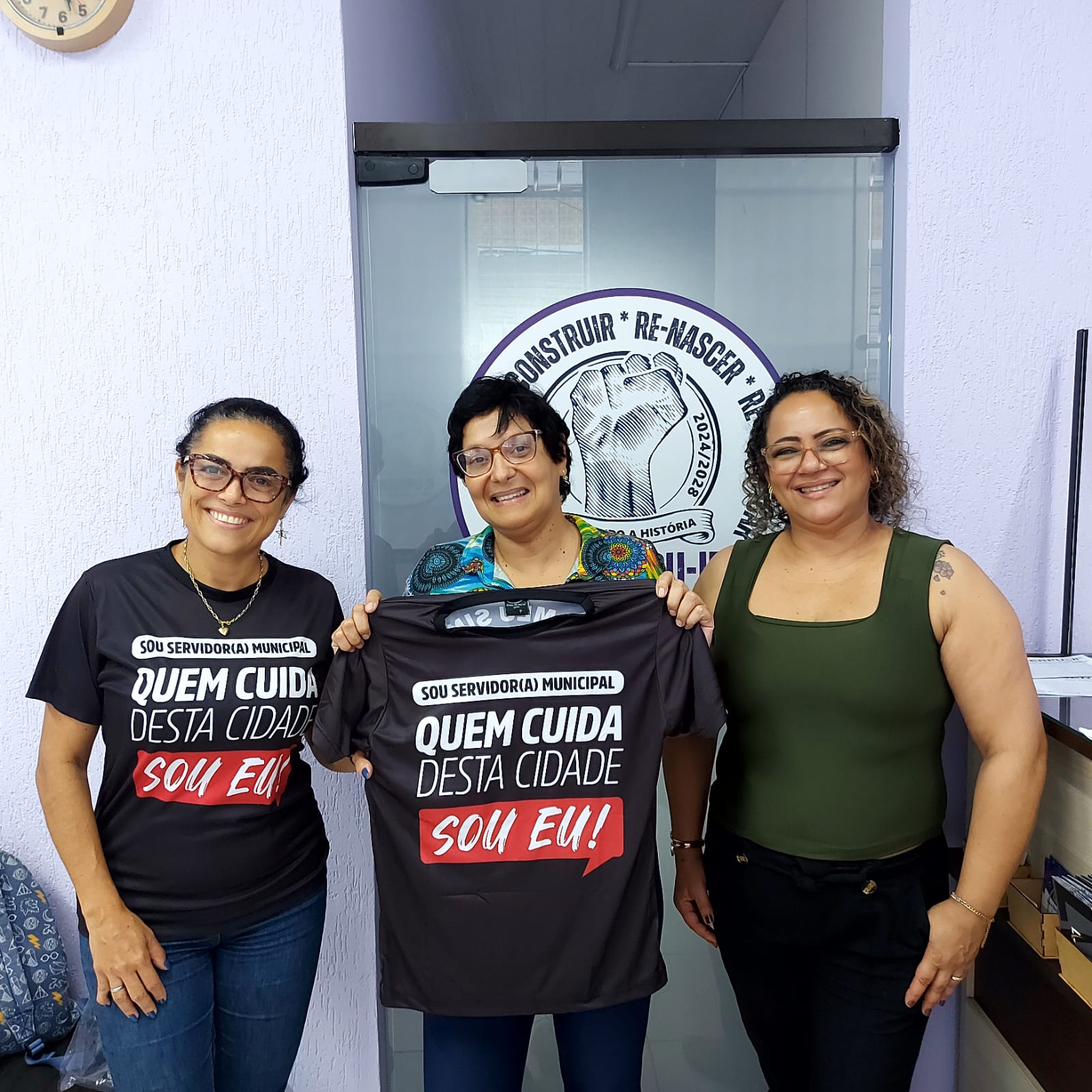 Quatro visitas de sorteados com a camisa especial do SINSERPU-JF