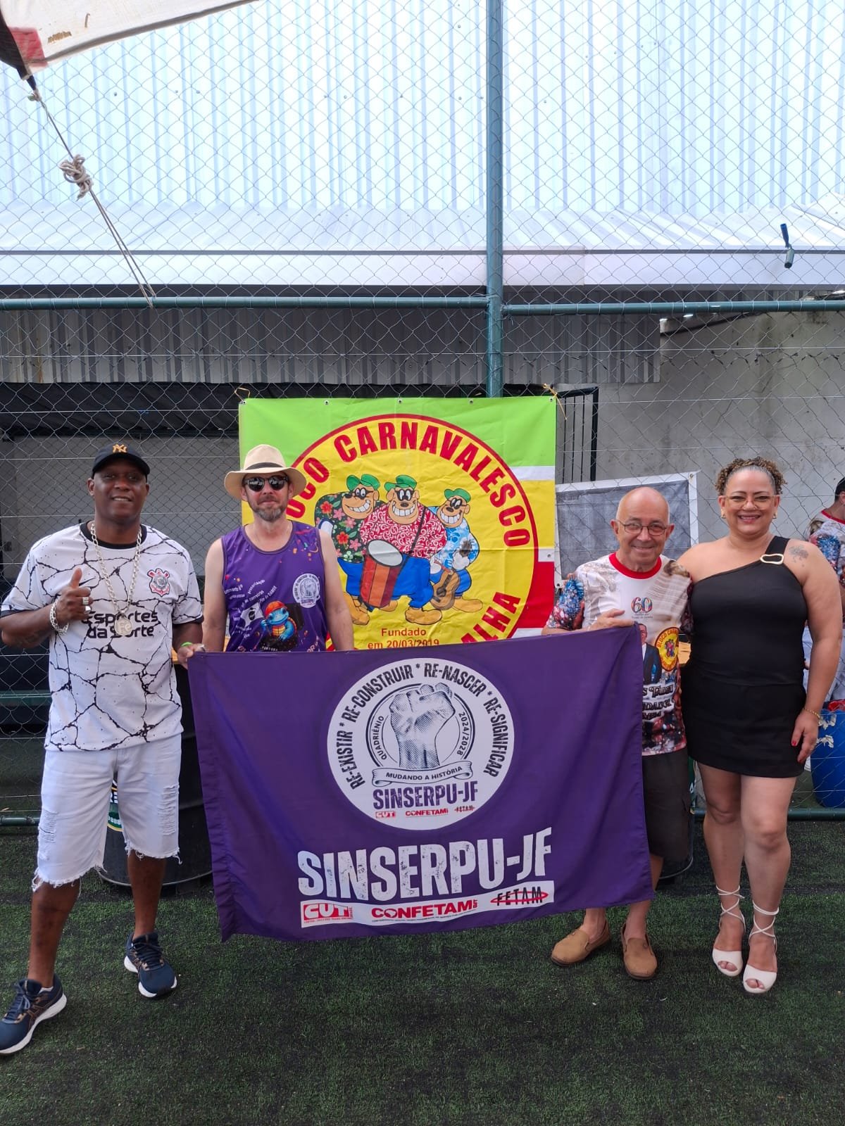 “Chaves” (Financeiro) representaram o SINSERPU-JF na escolha do samba-enredo do Bloco Irmãos Metralha para o Carnaval 2026 – evento descrito pelos presentes como uma “tarde de união, alegria e valorização da cultura do samba”.