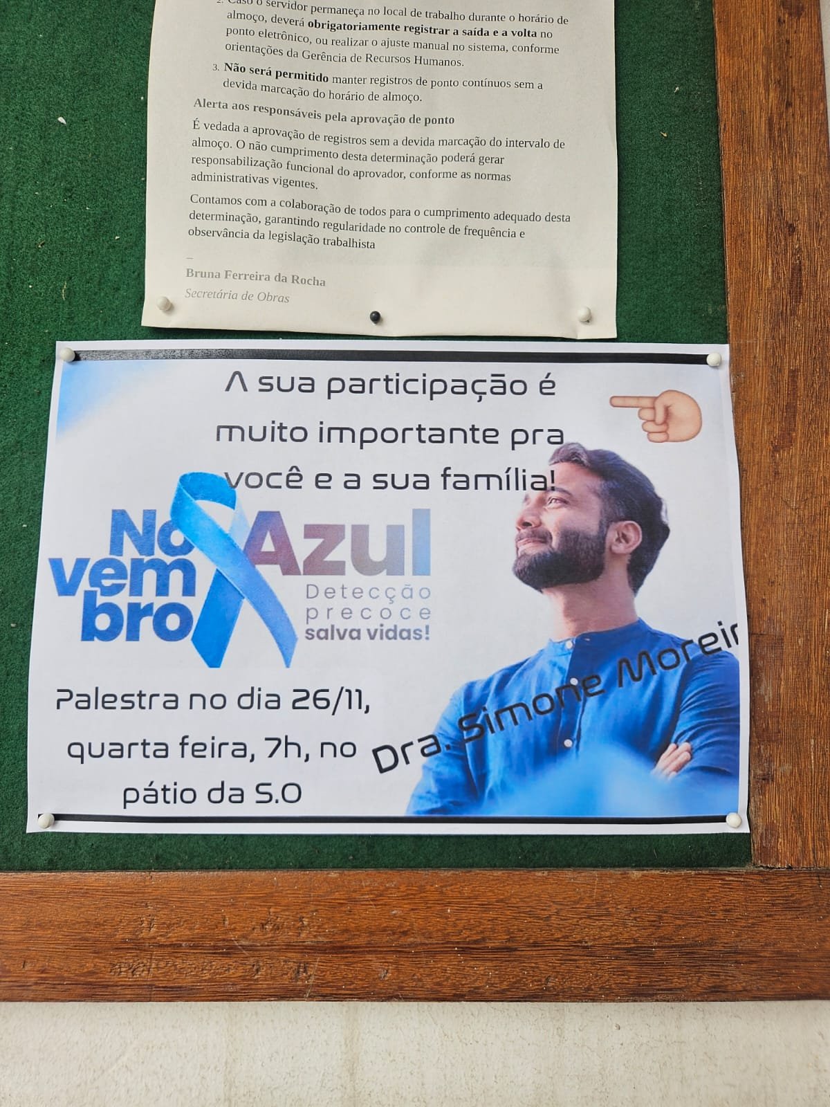 Na manhã desta quarta-feira, 26 de novembro, servidores da Secretaria de Obras (SO) participaram de uma palestra sobre saúde masculina, com foco na prevenção e no diagnóstico precoce do câncer de próstata. A ação, alusiva à campanha Novembro Azul, foi organizada pela CIPA (Comissão Interna de Prevenção de Acidentes e de Assédio) da SO.