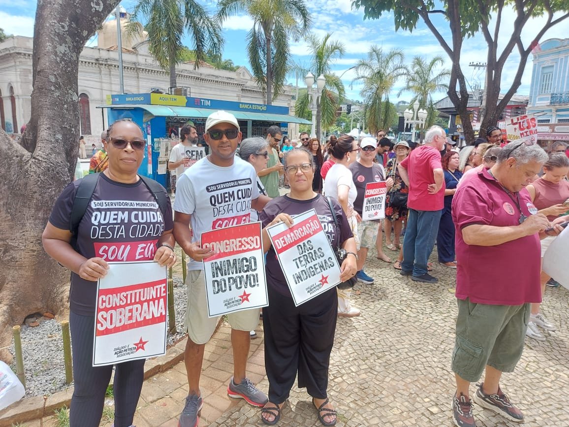 E foi isso que os juizforanos fizeram, na manhã deste domingo (14 de dezembro), convocados por diversas entidades, entre elas o SINSERPU-JF, para protestar principalmente contra o PL da Dosimetria (redução de penas) – que, na verdade, é uma anistia disfarçada para os que tentaram dar um golpe de Estado, em 2023