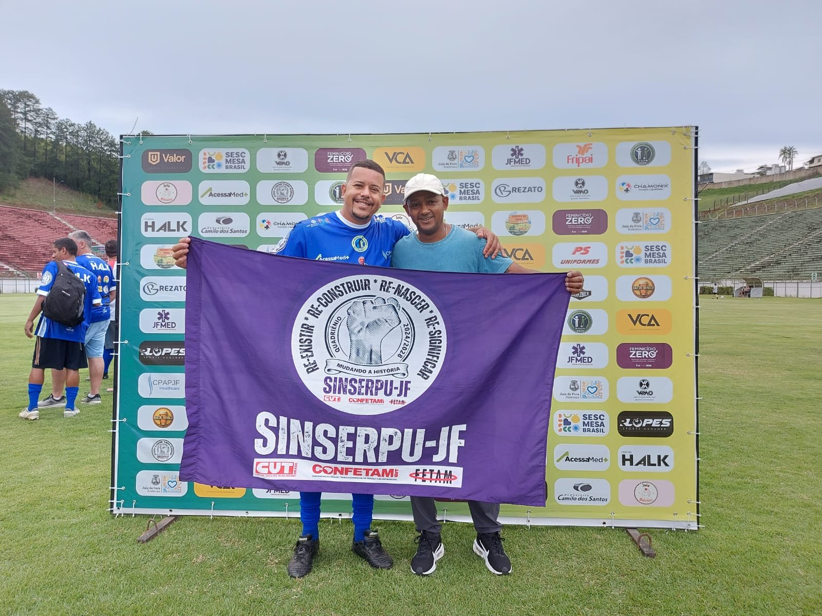 No primeiro jogo, o time Azul (“Seleção brasileira da Copa de 58” – a do menino Pelé) venceu o time Amarelo (“Brasil da Copa de 62”, o de Garricha) por 7 a 0. No time derrotado, jogou, no primeiro tempo, o diretor do SINSERPU-JF Marco Antônio Ribeiro.