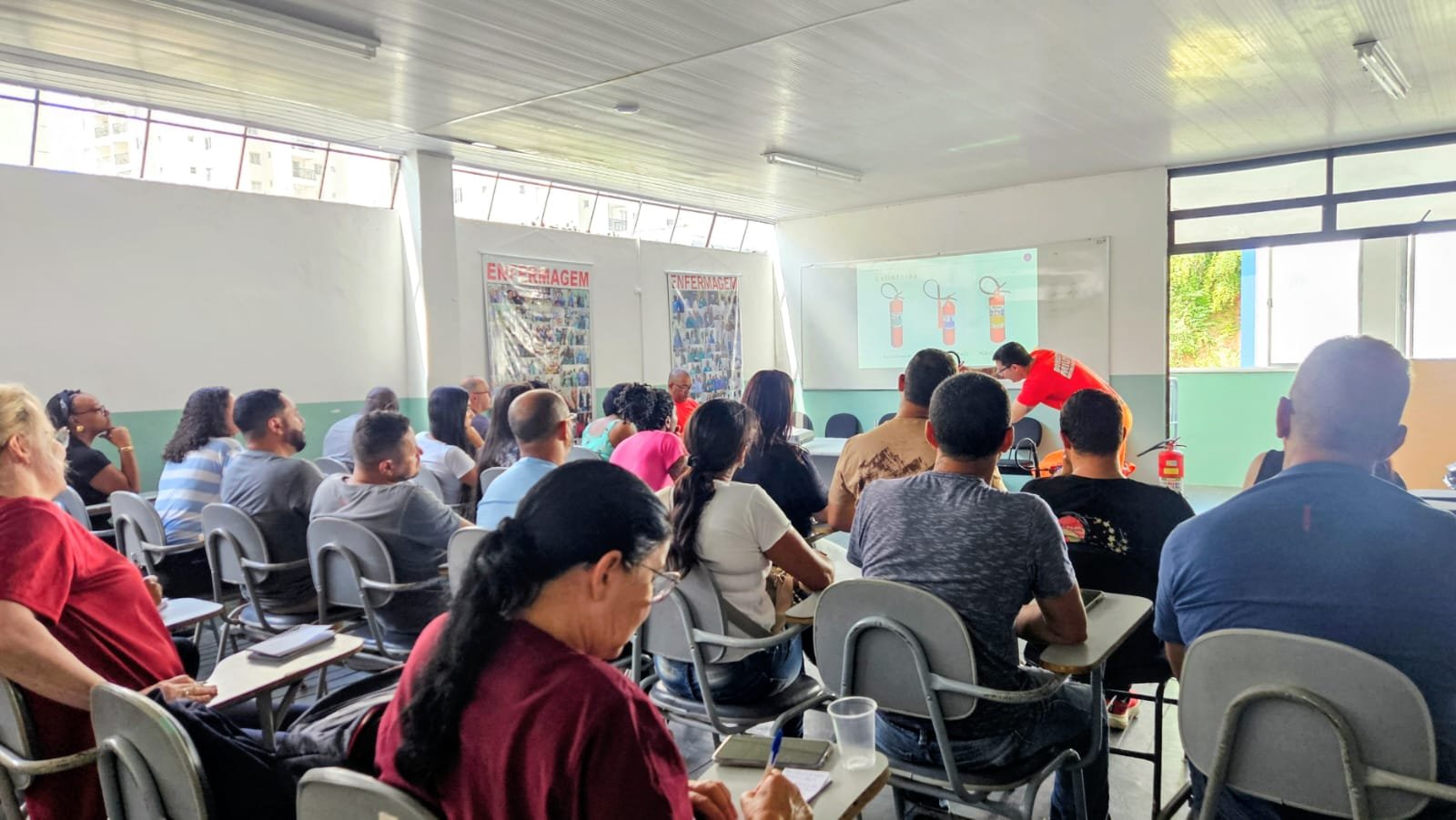 A programação incluiu palestras e um simulado com foco no Plano de Evacuação e Abandono do HPS, além de orientações sobre técnicas de uso de extintores. Além dos diretores do SINSERPU-JF, estiveram presentes representantes de diversas instituições municipais, como Serviço de Transporte Inter-Hospitalar da Secretaria de Saúde, Departamento da Unidade Regional Leste, Guarda Municipal, Polícia Penal, Polícia Civil e Departamento de Internação Domiciliar.