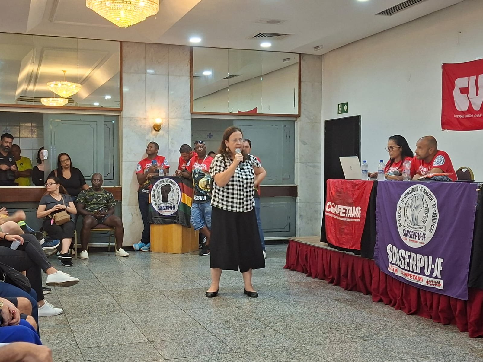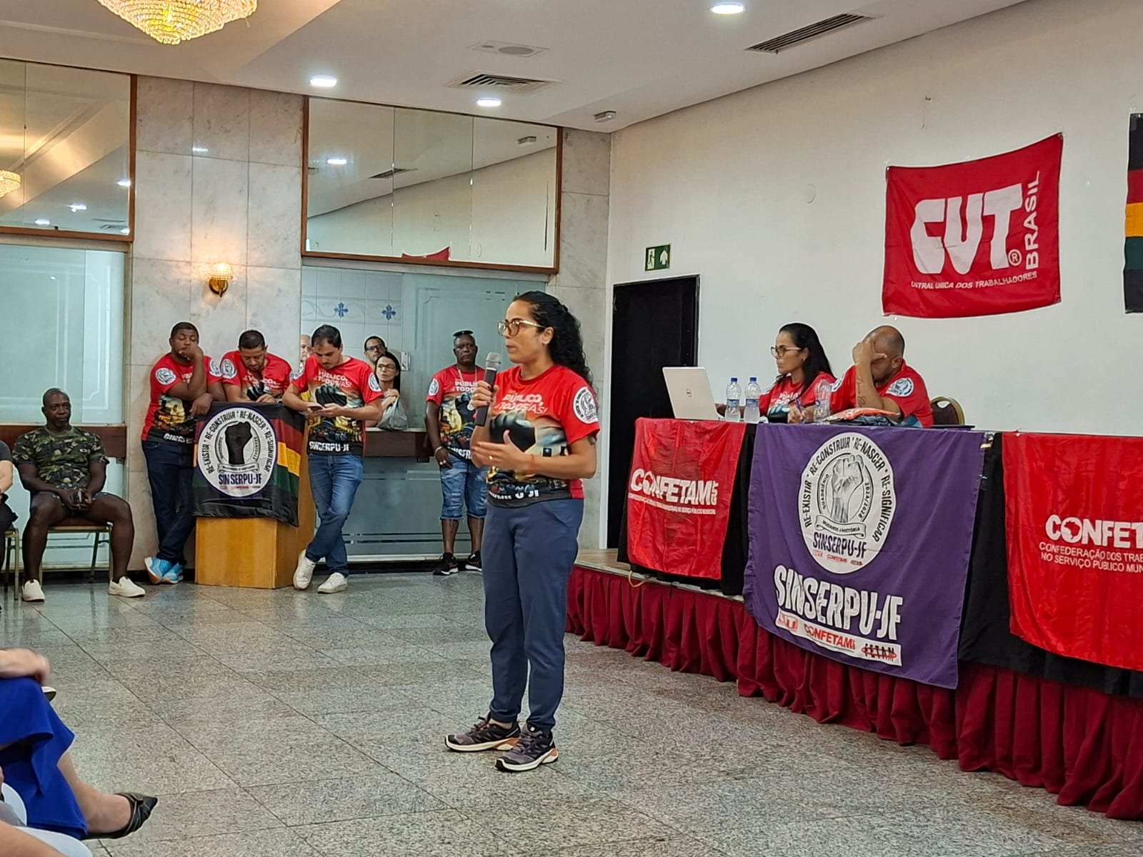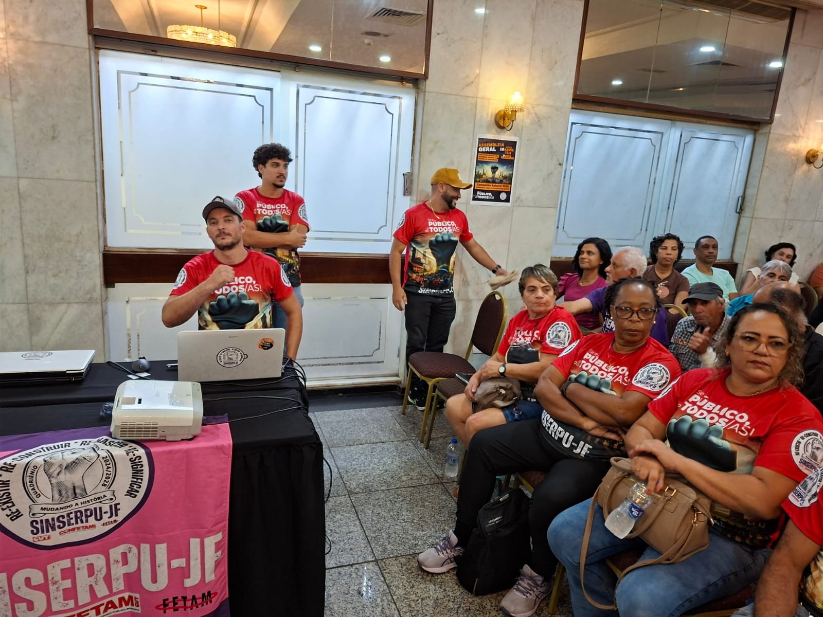 A presidenta do SINSERPU-JF, Deise Medeiros, acompanhada do vice-presidente Weber Wagner e dos diretores Anderson Gonçalves [...]