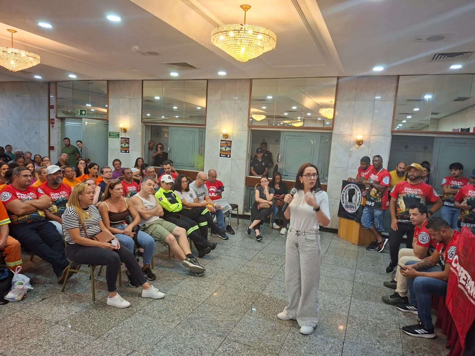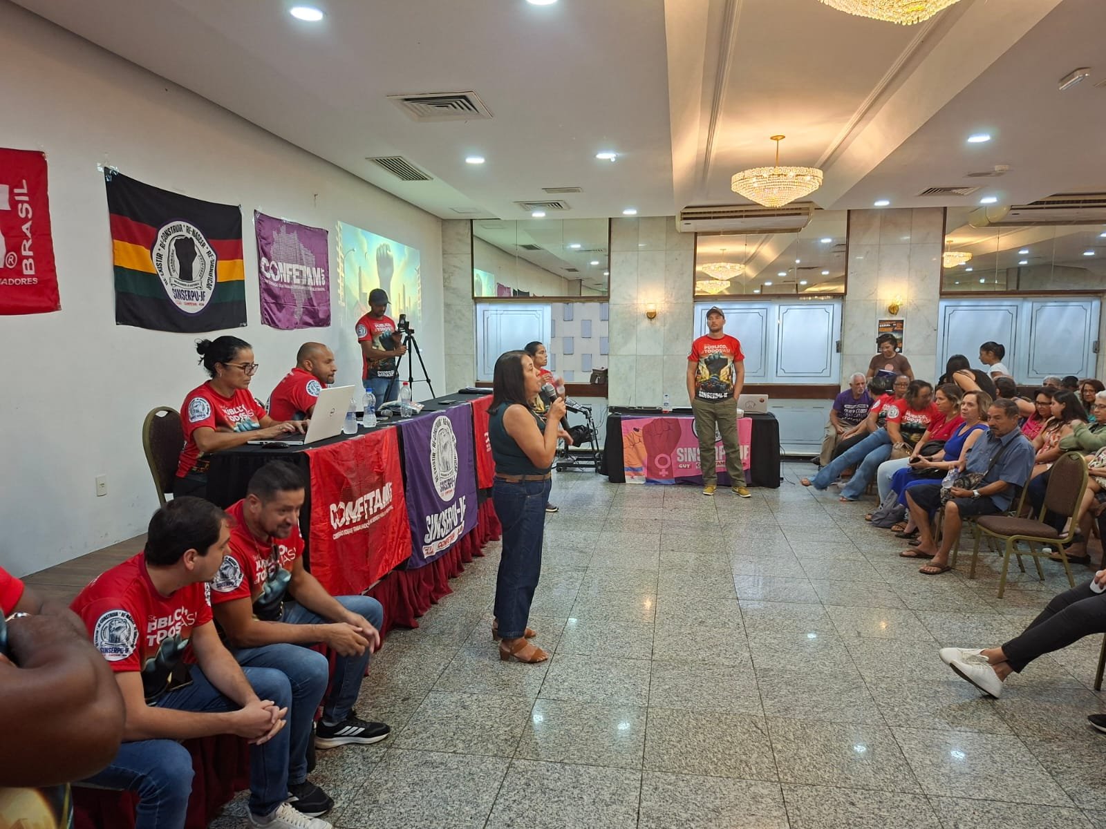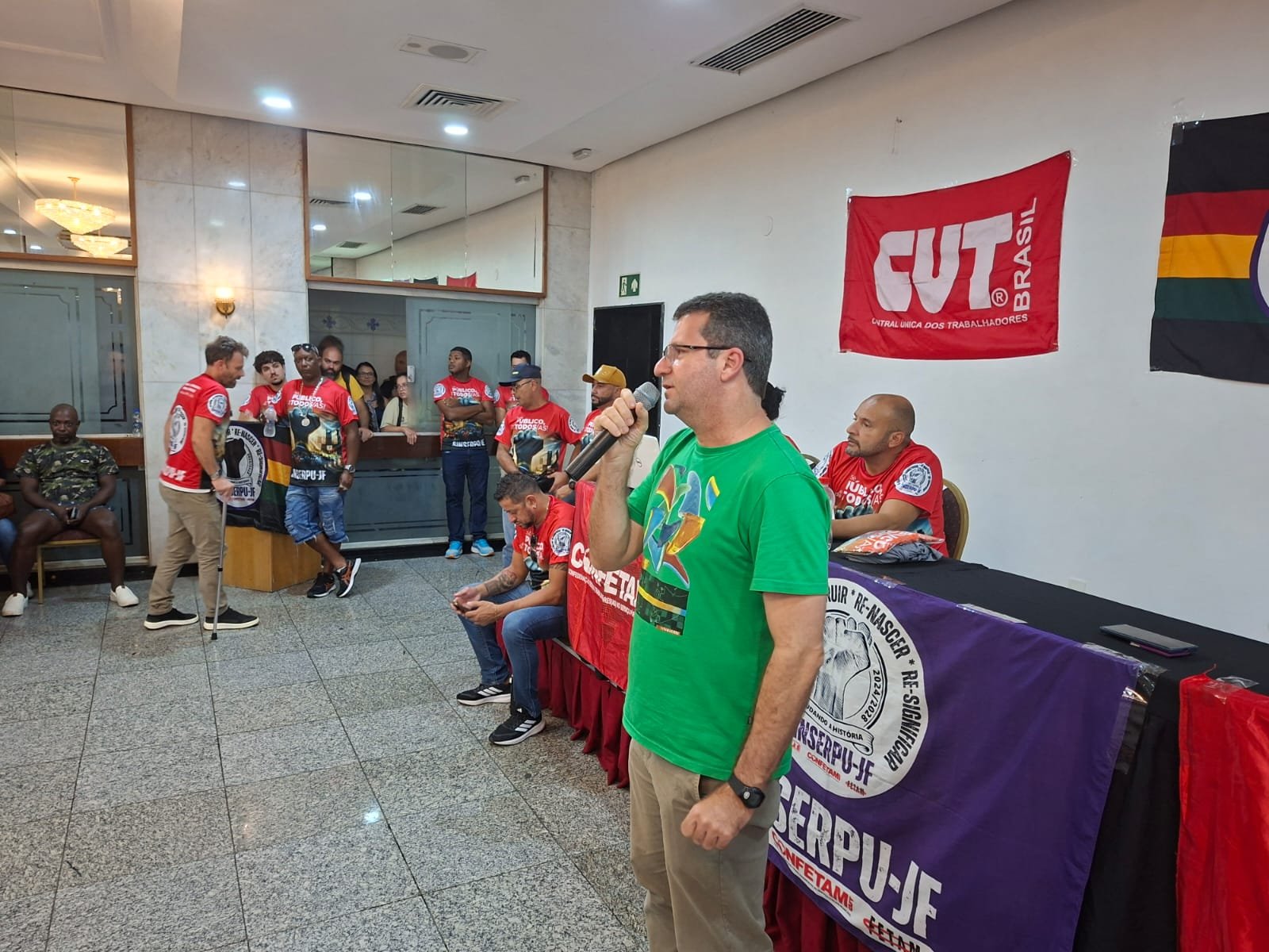 A presidenta do SINSERPU-JF, Deise Medeiros, acompanhada do vice-presidente Weber Wagner e dos diretores Anderson Gonçalves [...]